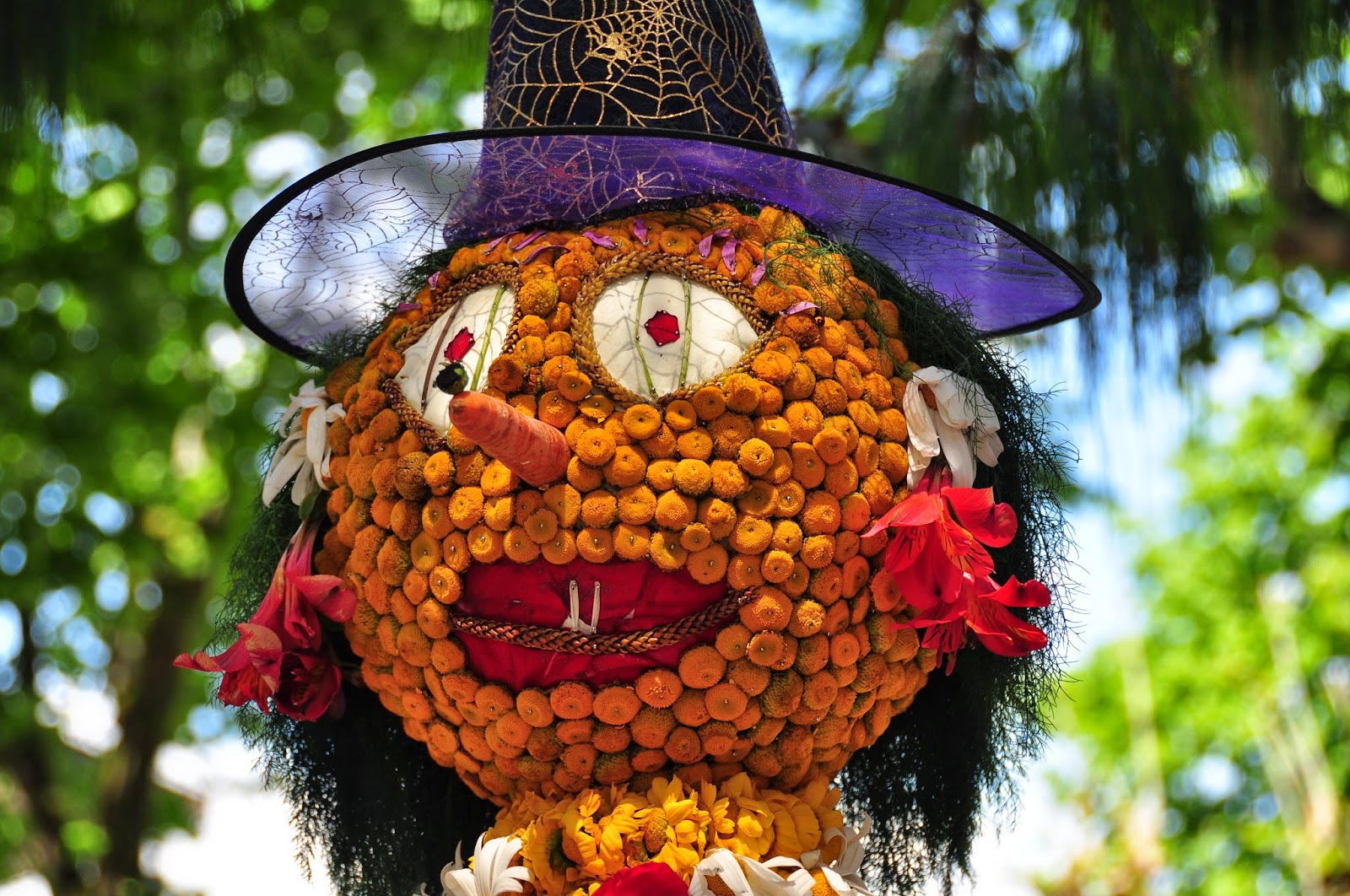 Nuestra querida bruja, cada año más elegante. Sus diseñadores... !son unos artistas!Hay unas ramitas colocadas colaboración de mi nieto Roi, es el mayo de su cole y todos participan llevando algo de flor