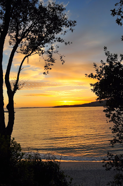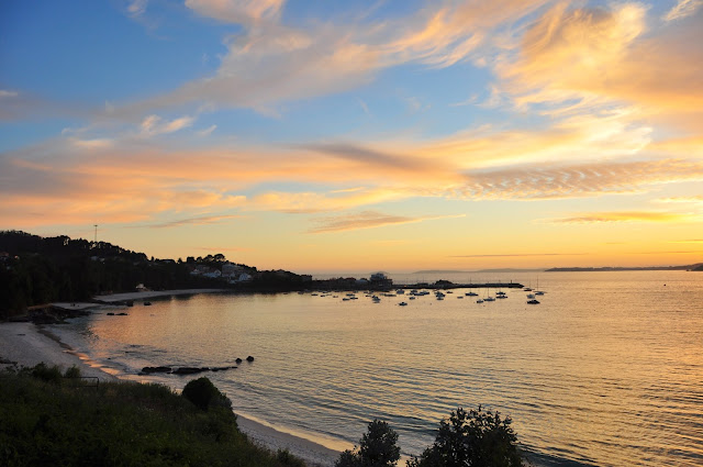 Atardecer en la playa de Aguete, Real Club de mar Aguete, Marín, Galicia, Spain.